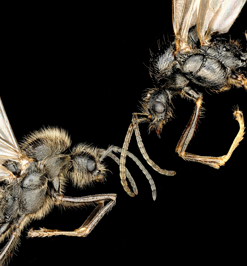 Une équipe de chercheurs issus de l’Institut des Sciences de l’Evolution de Montpellier (ISEM - CNRS / IRD / Univ. Montpellier), de l’Institut NeuroMyoGène (INMG-AR – CNRS / INSERM / Univ. Claude Bernard Lyon 1) et des laboratoires Écologie des Hydrosystèmes Naturels et Anthropisés (LEHNA - CNRS / Ecole Nationale des Travaux Publics d’Etat / Univ. Claude Bernard Lyon 1) et Évolution, Écologie et Paléontologie (EVO-ECO-PALEO – CNRS / Univ. Lille), révèle un phénomène inédit : des mâles issus d’une même mère de fourmi moissonneuse appartiennent à des espèces distinctes, avec des génomes et des morphologies aussi différents que ceux d’espèces séparées depuis plus de cinq millions d’années. Par exemple, quand un mâle est très poilu, l’autre est presque glabre [imberbe], des critères habituellement déterminants pour distinguer les espèces de fourmis. Fruit de cinq ans de recherche, ce travail a impliqué l’échantillonnage de 120 populations européennes, le séquençage de 400 individus et l’observation de 50 colonies en laboratoire.